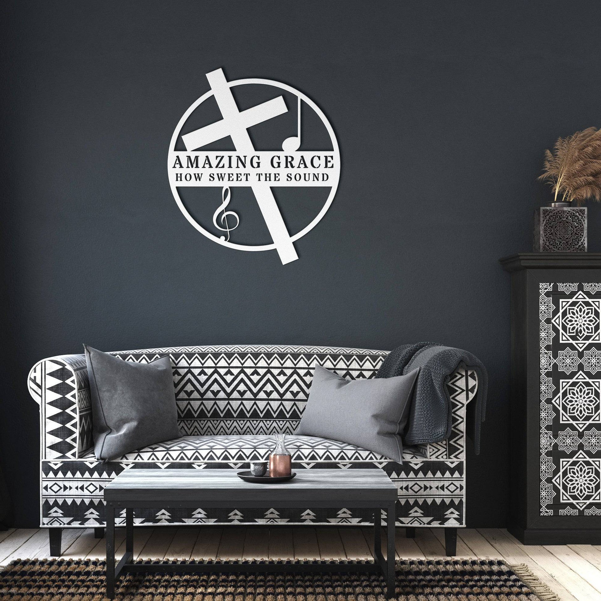 This stunning metal sign in a variety of colors (Black, Red, White, Copper, Silver) and sizes (14 Inch, 18 Inch, 24 Inch, 30 Inch, 36 Inch) features the timeless Christian hymn Amazing Grace in a beautiful script font. Made with high-quality steel, this sign is durable and long-lasting, perfect for adding a touch of faith to any room. Ideal for Christian wall decor, this steel sign is a unique and meaningful piece that will inspire and uplift all who see it.